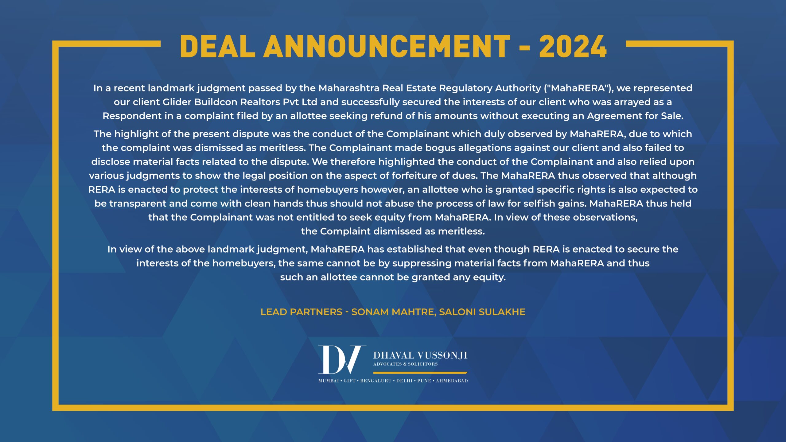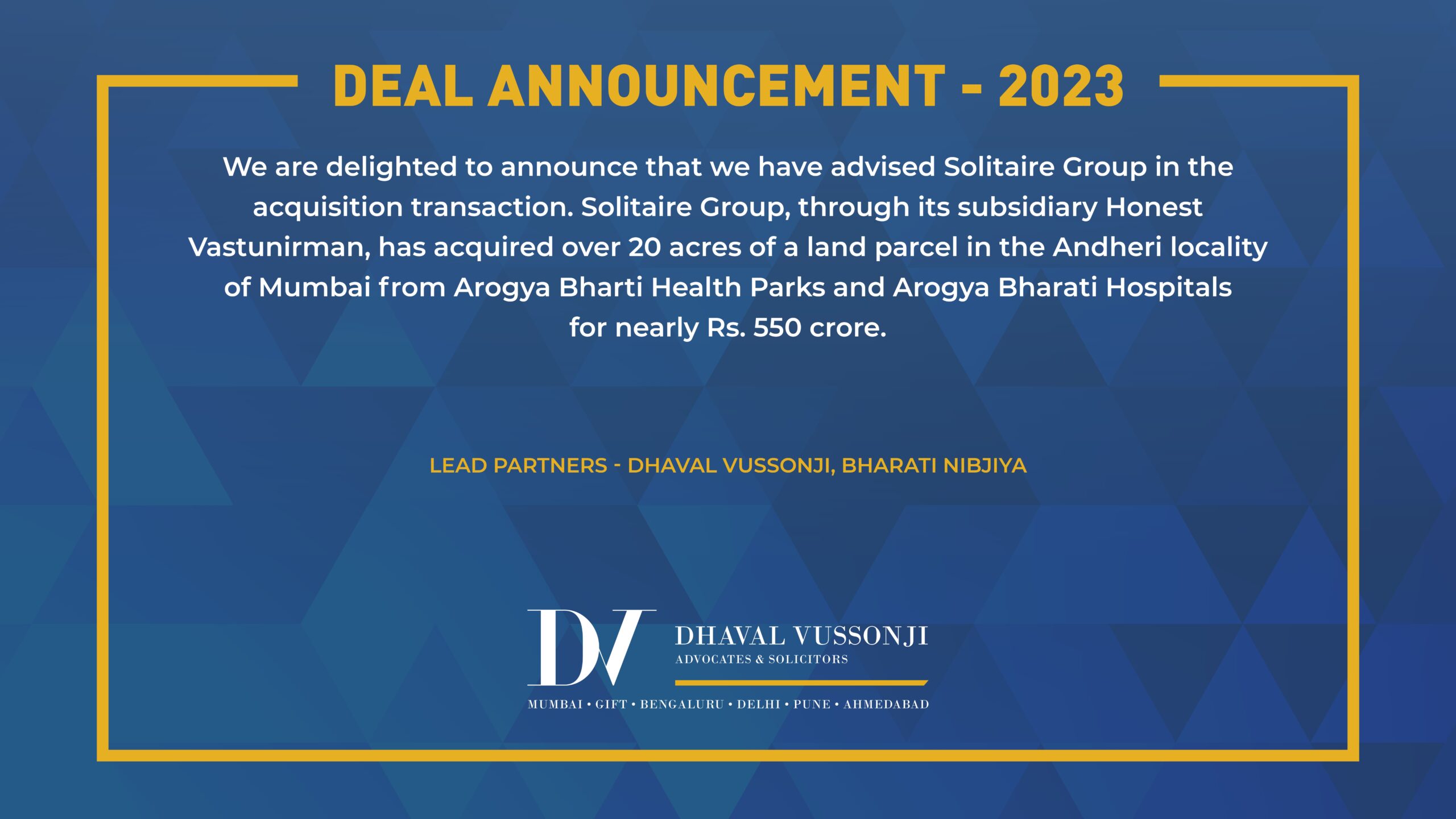 By proceeding further and clicking on the “AGREE” button herein below, I acknowledge that I of my own accord wish to know more about Dhaval Vussonji & Associates for my own information and use. I further acknowledge that there has been no solicitation, invitation or inducement of any sort whatsoever from Dhaval Vussonji & Associates or any of its members to create an Attorney-Client relationship through this knowledgesite. I further acknowledge having read and understood the Disclaimer below.